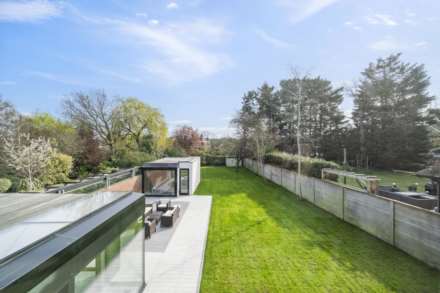 Spacious and thoughtfully planned, the accommodation is arranged over three floors with underfloor heating in the hall, kitchen/dining room, studio and all the bathrooms. On the ground floor, is an impressive main reception room with double height celing and a kitchen/dining room, both with sliding doors opening to the rear garden. In addition, there is a large cinema room with Dolby surround sound and bay window looking onto the front garden, a study with French doors opening onto the patio, and a well-equipped utility room with access to the side and a downstairs WC. The garden measures 113 ft 9" long by 44 ft 5" wide (34.6 m x 13.5 m) with a large patio leading to a modern garden room.